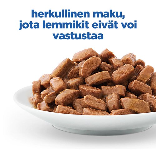 Hill's Science Plan Mature Adult -kissanruoka lohella on täysipainoista lemmikinruokaa, joka sisältää ActivBiome+ Multi-Benefit -teknologian.
