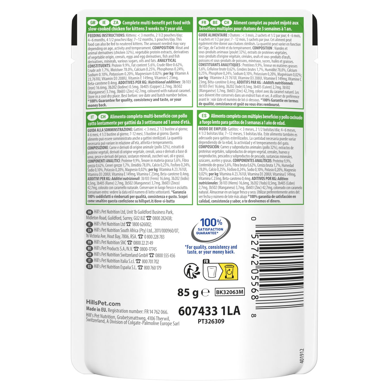 Kanaa sisältävä Hill’s VET ESSENTIALS MULTI-BENEFIT Kitten -kuivaruoka on ainoastaan eläinlääkäreiltä saatava monivaikutteinen täysravinto, jonka on kliinisesti todistettu tukevan kissanpennun kasvuun ja kehitykseen liittyviä tarpeita. Se sisältää tervettä ruoansulatusta ja lemmikin hyvinvointia edistävää ActivBiome+-prebioottisekoitustamme, joka vahvistaa lemmikin kehittyvää mikrobiomia, sekä aivojen kehitystä tukevia omega-3-rasvahappoja ja kehittyvää immuunijärjestelmää tukevia antioksidantteja.