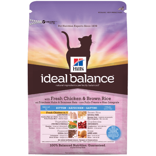 <p> Hill’s<sup>TM</sup> <span class='nowrap'>Ideal Balance<sup>TM</sup></span> Kitten is specially formulated to meet the needs of kitten up to 1 year old.<b></b></p><p> More than just natural ingredients, perfectly balanced nutrition, made with fresh chicken No.1, for your cat’s overall health, immunity, skin & coat condition and digestion. 100% Balanced. 100% Taste. Guaranteed.</p>